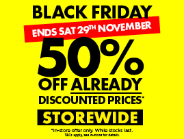 Promotion Date: Thursday 13th November 2025 until Saturday 29th November 2025. Customers will receive 50% off already discounted prices during the promotional period. 50% off already discounted prices is calculated on the Promotional Retail Price (PRP) and excludes gift cards. Five Star reserves the right to extend or withdraw the offer at any time without notice. Not redeemable for cash. The promotion is available in-store only at the Five Star Truganina and Five Star Footscray. Offers apply while stocks last. No rainchecks will be issued. Not valid for online purchases. Cannot be combined with any other offer, promotion, or discount unless expressly stated.